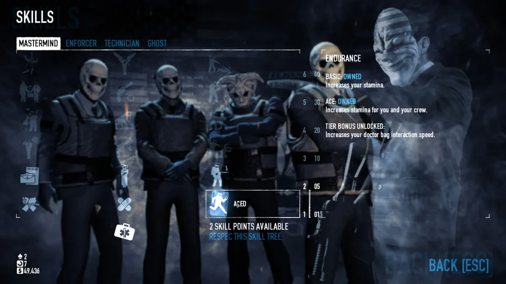 Режимы сложности: нормальный, тяжелый, очень тяжелый и убийственный. Начиная с тяжелого режима сложности и выше, вы получаете маленькие желтые черепа, которые показывают ваш уровень риска. Чем выше уровень риска, тем больше опыта, но вместе с тем и больше врагов. Для новичков я порекомендовал бы нормальный уровень сложности. Когда вы станете уровнем повыше и вооруженным, то можете пробовать тяжелый и очень тяжелый уровень сложности. Убийственный уровень сложности – это другая история. Суть в том, что если вы провалите кражу на убийственной сложности, то оно навсегда исчезнет с вашей карты. Так что готовьтесь к таким трудностям.