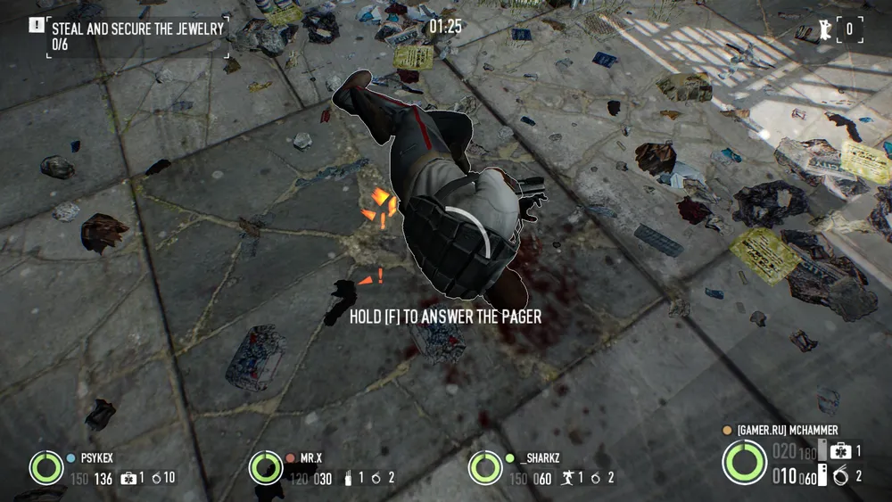 Используйте медмешки и сумки с патронами грамотно – вас арестуют, если вы упадете три раза за одно ограбление. Используйте медмешки после вашего первого или второго падения, чтобы исправить ситуацию.