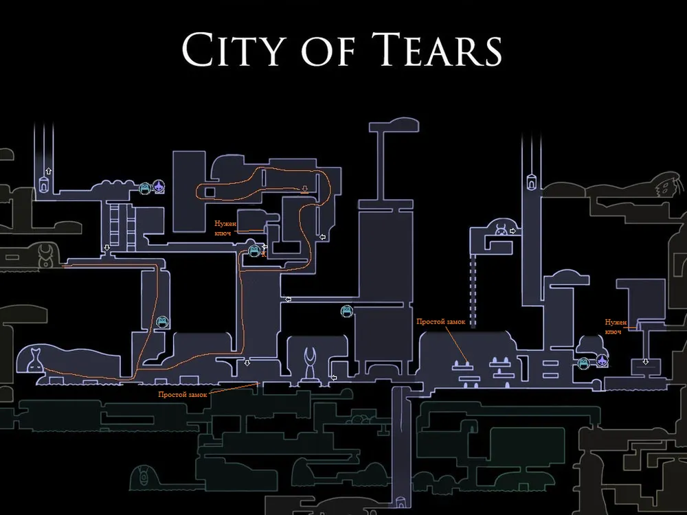 Дальше чёткого маршрута нет, вариантов куда идти много. Моя личная рекомендация: в глубинное гнездо за проездным, потом в древний бассейн за рудой для прокачки оружия, к кузнецу и обратно в бассейн бить босса, дающего двойной прыжок. Затем стоит заглянуть в улей за амулетом.