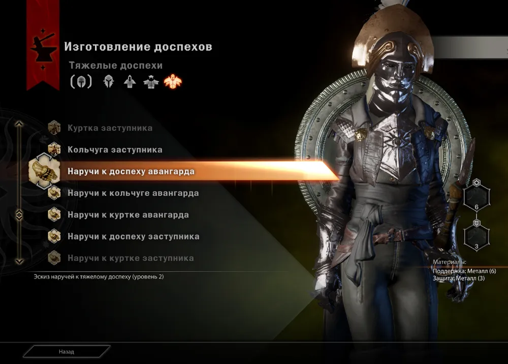 Для крафта доступны все три вида брони (легкая, средняя и тяжелая), а так же шлемы каждого из трех видов.