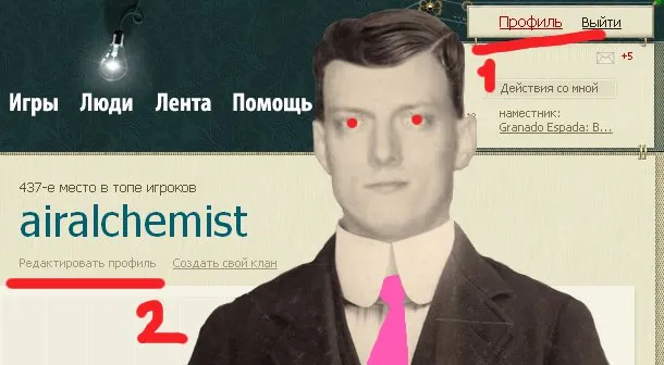 Появляется окно с информацией о вашей личине. Чуть пониже никнейма есть ещё одна кнопка - "Редактировать профиль". Смело жмём.