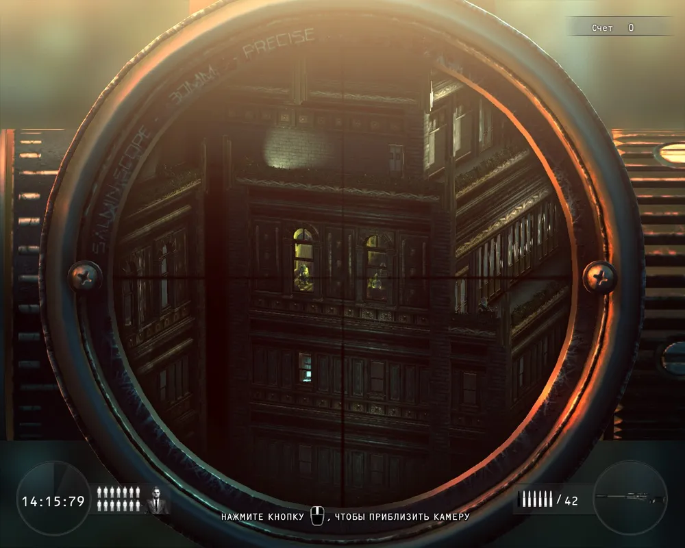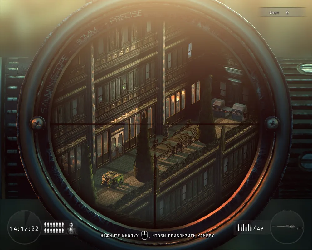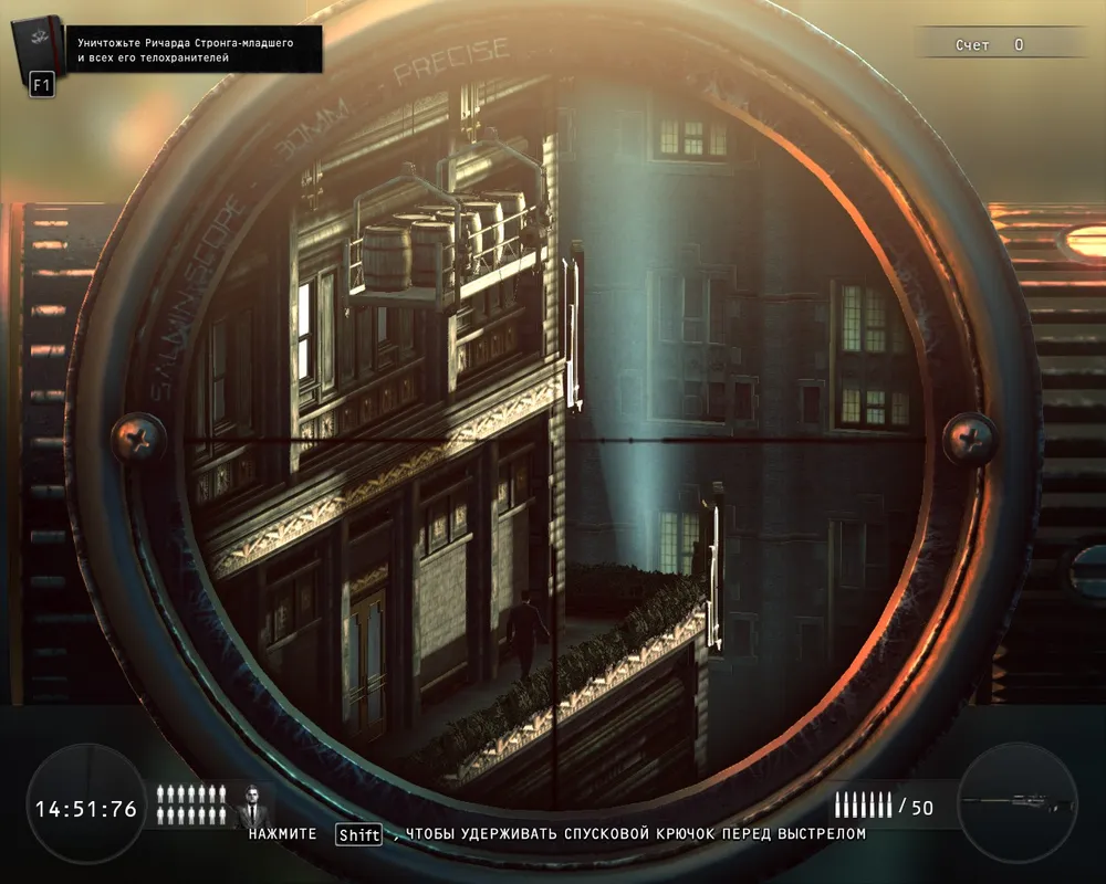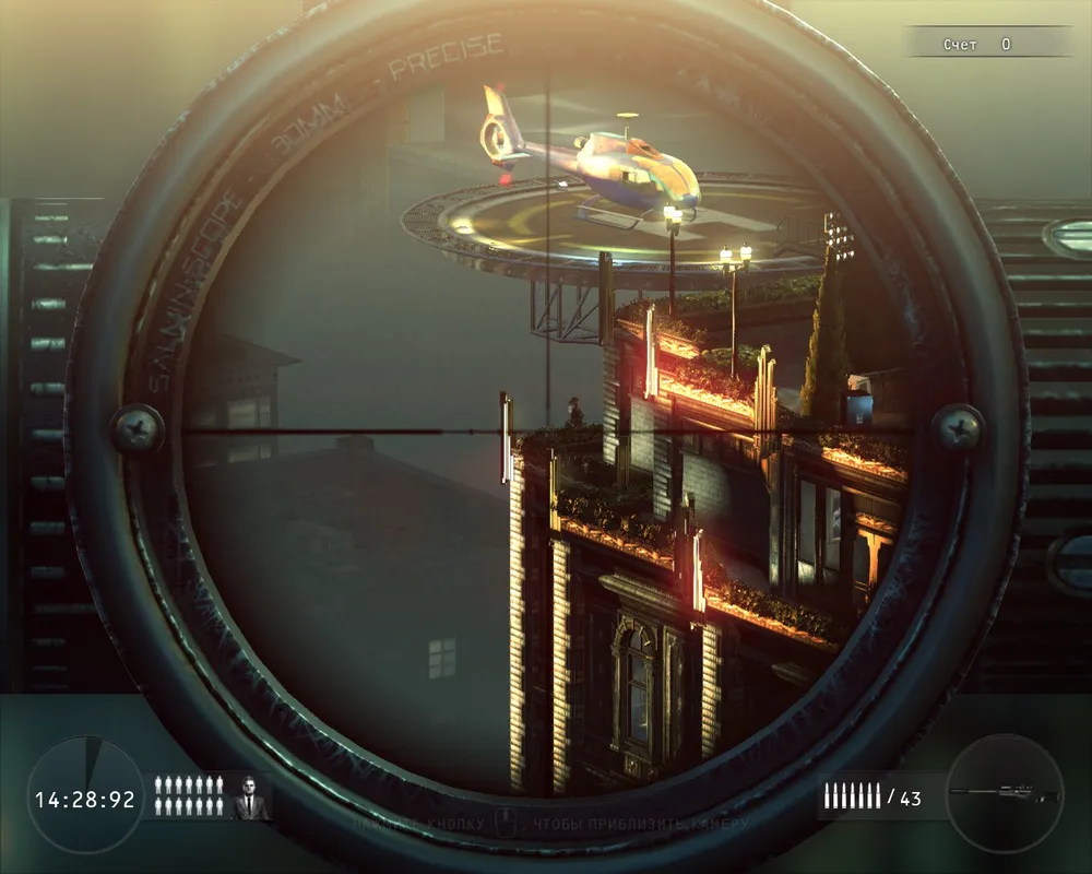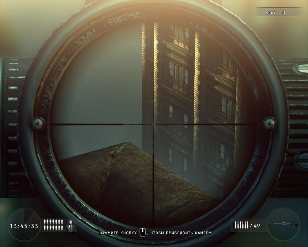 Тоже несложная ачивка. На скриншоте Хитман смотрит прямо на то здание, на котором находиться наша цель. Смотрите на правую часть здания и стреляйте по боксерской груше (не по человеку) и испытание пройдено!