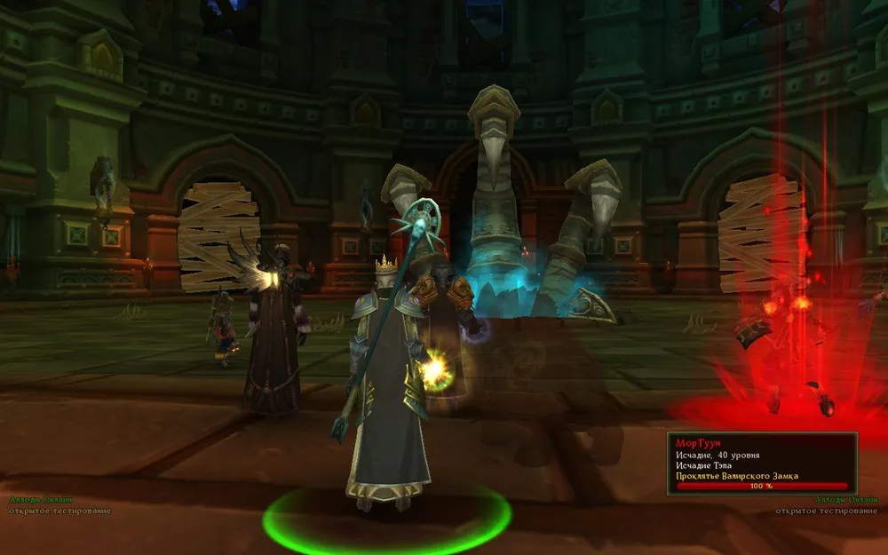 Поговорите с эльфом, встаньте рядом с гробом и заготовьте АОЕ, будет три волны скелетов. После ритуала появится Мор'Гуун.
