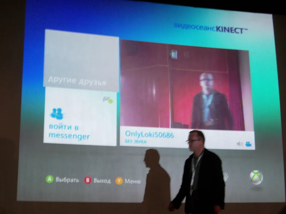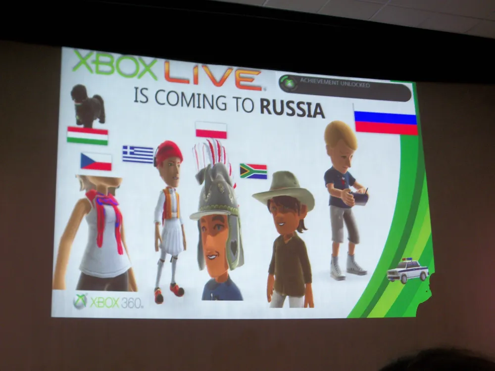 Следом иностранный гость представил сервис Xbox Live. Особенно меня развеселил автомобиль в правом нижнем углу.