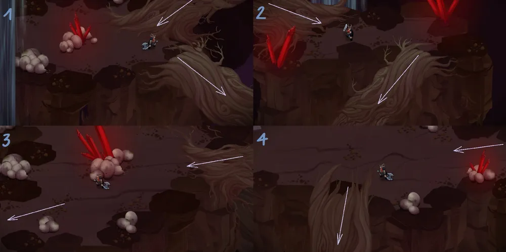 На этой локации нам нужно будет постоянно путешествовать по корням огромного дерева.
