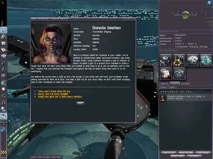 В этой части разговор пойдет только о Миссиях. После того как вы продолжите диалог Агент опишет вам Миссию, после чего она появится в окне “Journal”. Открыв его и дважды щелкнув на миссию вы получите ее детальное описание, включая ваше задание, обещанную награду и бонус, который вы можете получить выполнив миссию до истечения определенного срока.