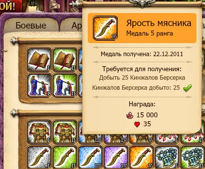 Мясник же не имеет медалей на набивание, однако содержит в своём дропе Кинжал берсека, за который Вы и получаете медали.