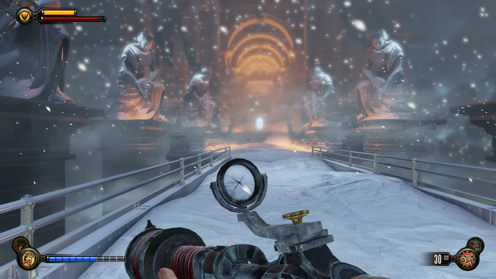 Наш герой Букер ДеВитт на протяжении всей игры использует большой и мощный арсенал оружия, от гранатометов до мощного револьвера для близкой дистанции. Также у него есть богатый выбор оружия для дальней и средней дистанций, в том числе, снайперская винтовка, карабины, охотничий от Основателей или Поливалка от Гласа Народа.