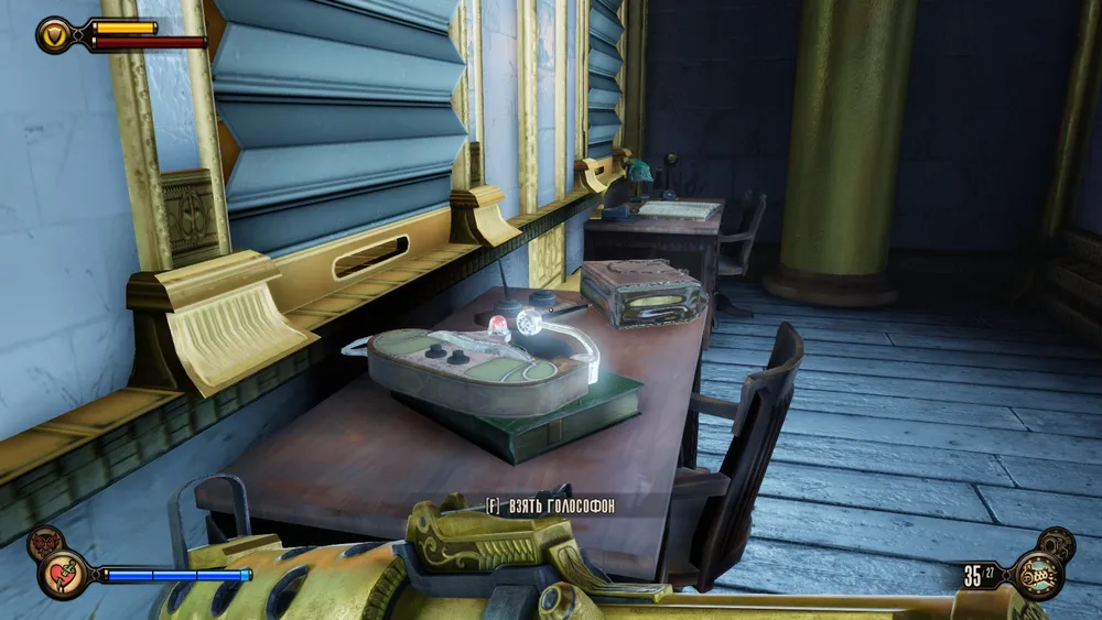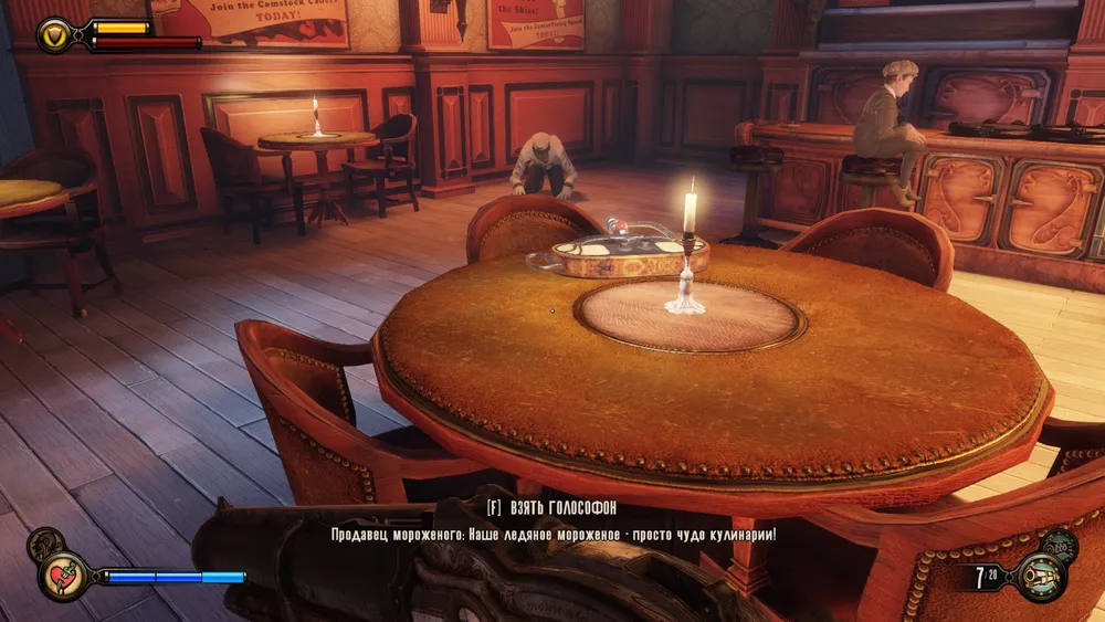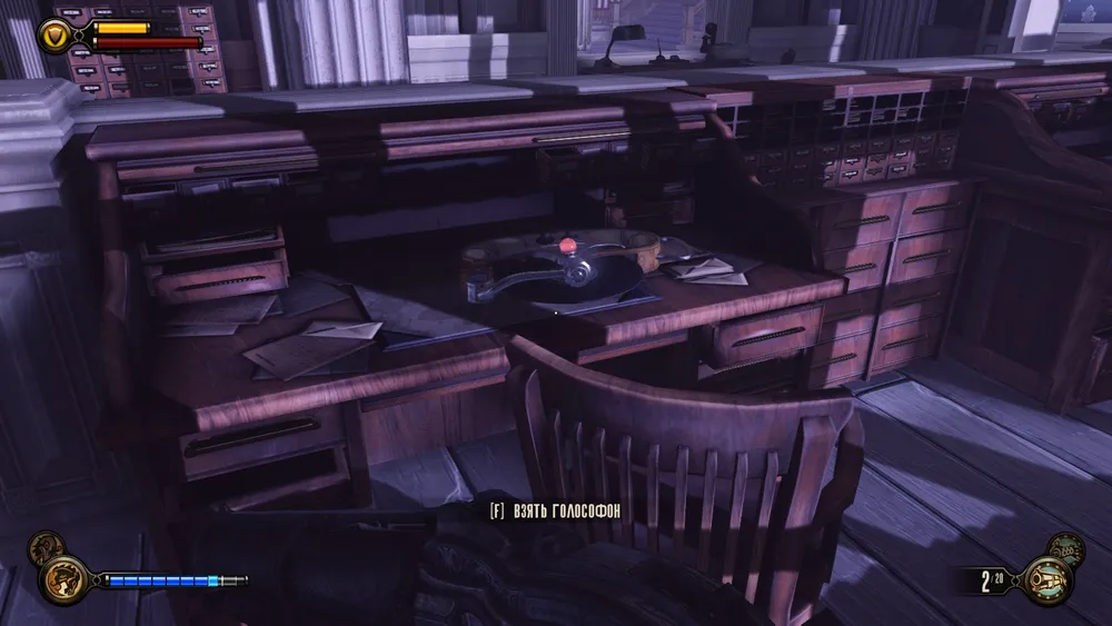 Один голософон можно найти сразу по прилету в Колумбию, в одном из крыльев часовни. Для этого, выйдя из капсулы, надо пройти налево к статуе Комстока, потом еще раз налево, к витражу с леди Комсток,