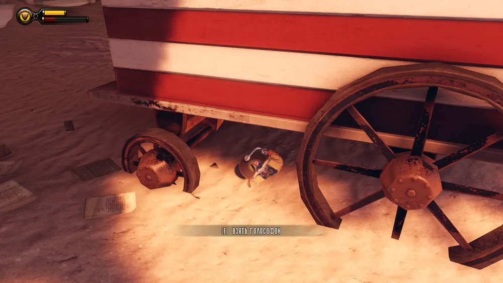 Если обойти прилавок справа, то на полу возле сейфа можно увидеть голософон.