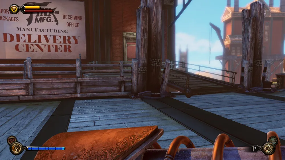 Когда вернетесь обратно на Солдатское Поле, теперь уже с полученным Электрическим Жокеем, цепляетесь за рельсы скайрела и спрыгиваете на балкончик особнячка с закрытыми решеткой воротами. Надо будет использовать Электрический Жокей, чтобы открыть решетку и войти в дом.