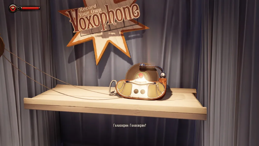 В левом туалете, куда Элизабет отказывается войти, на столике видим голософон.