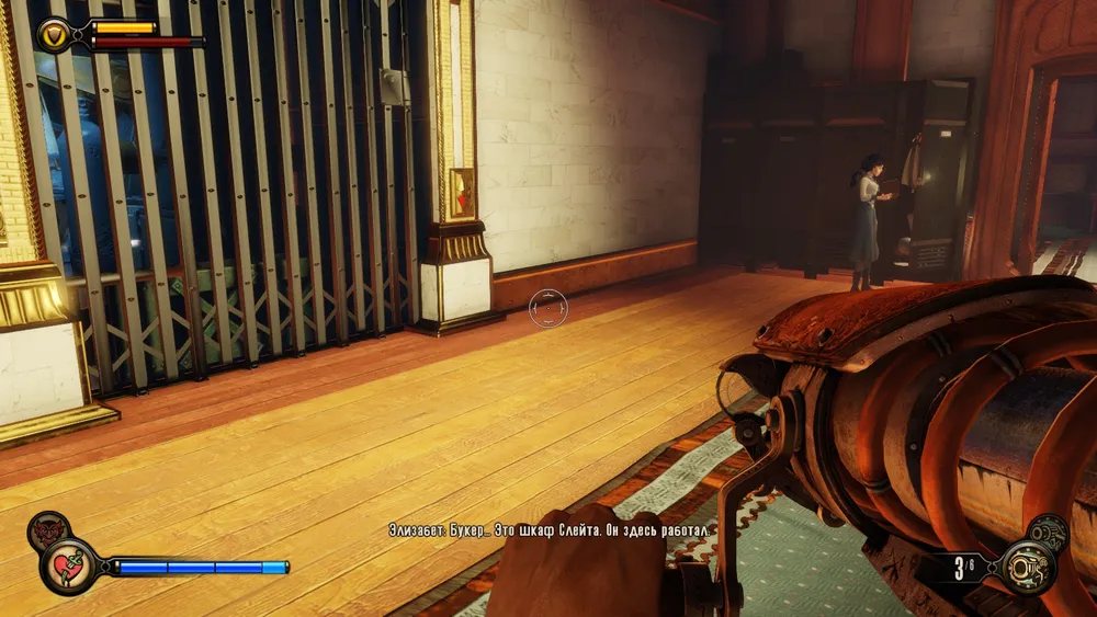 После побега Элизабет и первого разрыва пространства «с мчащимися вагонами», не слишком-то спешим за ней, она все равно никуда не убежит, сворачиваем налево.