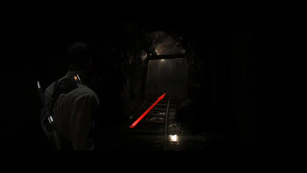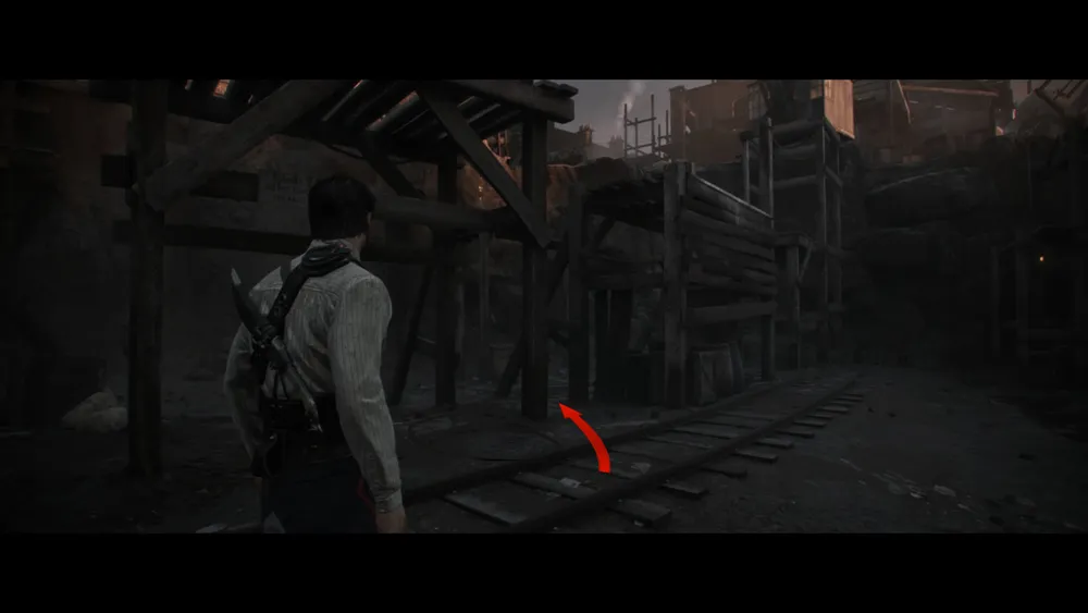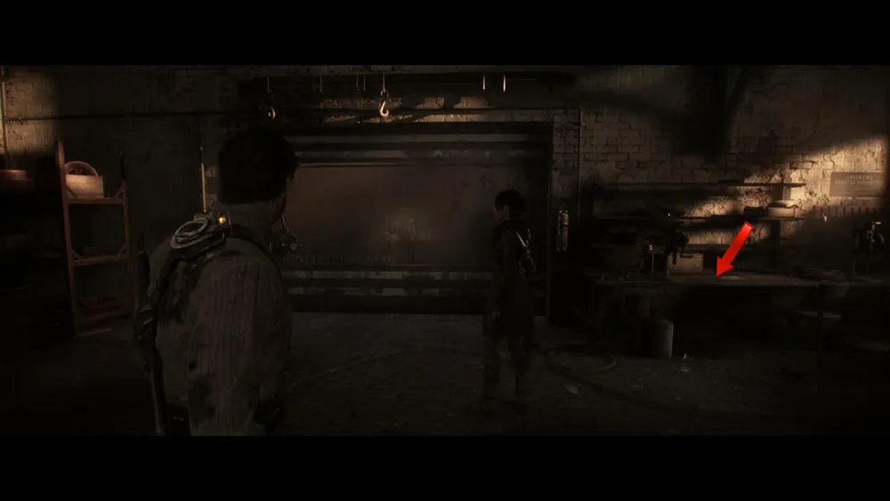 3. Предмет. Выбираемся наружу, разбираемся с охранником и двигаемся вперед вдоль рельс. Не доходя до конца путей, сворачиваем налево, а потом почти сразу направо. На верстаке справа лежит молоток, принадлежащий некоему С. Лоутону. Осмотреть молоток можно как до, так и после толкания очередной вагонетки.