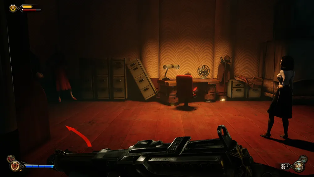 Таинственная и загадочная Элизабет - дама со многими талантами. Она и аптечку вовремя подкинет, и портал в другую реальность отворит. А еще она опытный медвежатник, перед которым не устоит ни один замок. Отпереть запертую дверь? Да не вопрос! Вскрыть сейф? И это не проблема. Главное, чтобы нужное количество отмычек было под рукой, остальное - дело техники. Искать отмычки (в промежутках между перестрелками) - задача Букера. Хотя и тут Элизабет не прочь придти на помощь и подсказать, в какую сторону смотреть, чтобы не пропустить ценный лут.