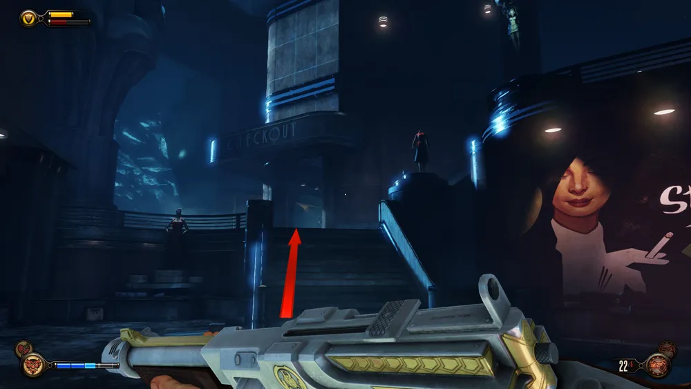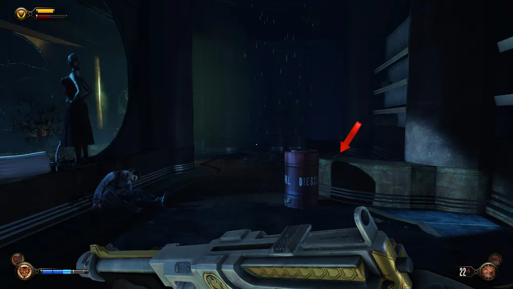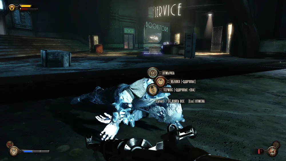 Как только Элизабет откроет нам дверь из отдела бытовых товаров в служебные помещения (для этого нам придется ее подсадить), в отделе появятся сплайсеры, среди которых будет отморозок. С него дропнется отмычка.