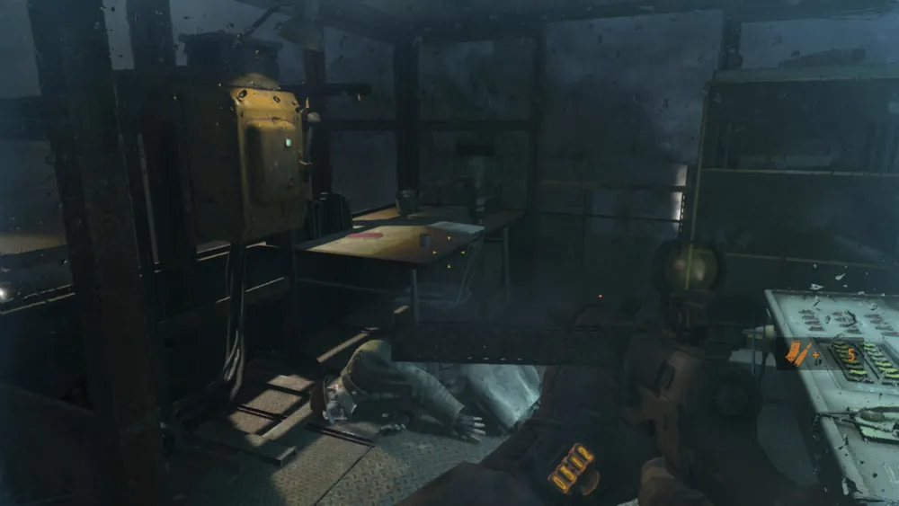 Вторая записка запрятана получше. Разделавшись с противниками в просторном туннеле с поездами, не спешите идти через синюю дверь, ибо обратно в это помещение вы вернуться не сможете. Направляйтесь к большим воротам, над которыми еще «13 сектор» написано. Вы окажетесь в казармах бойцов Красных.