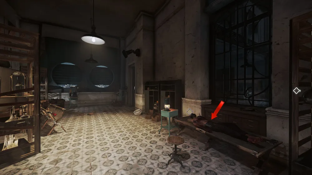 В этом случае Васко не успеет до нападения Королевского Убийцы сообщить код от своего сейфа, и нам придется добывать его самостоятельно с трупа бедолаги. Свежерастерзанное тело валяется на полу операционной. Его надлежит облутить – так мы получим записку с кодом под названием «Тому, кто найдет мой труп». Ну, вроде как мы его нашли, значит, письмо попало по адресу.