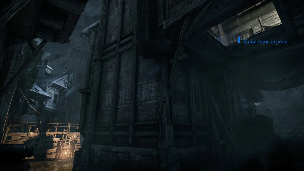 Чтобы попасть "в гости" к господину Перри, Гаррету придется немного полазить. Оказавшись поблизости от конечного пункта назначения, поищите глазами балку, куда можно пристрелиться канатной стрелой. По канату поднимаемся на мостки под окно второго этажа, потом через это окно попадаем в чью-то квартирку, покидаем ее...