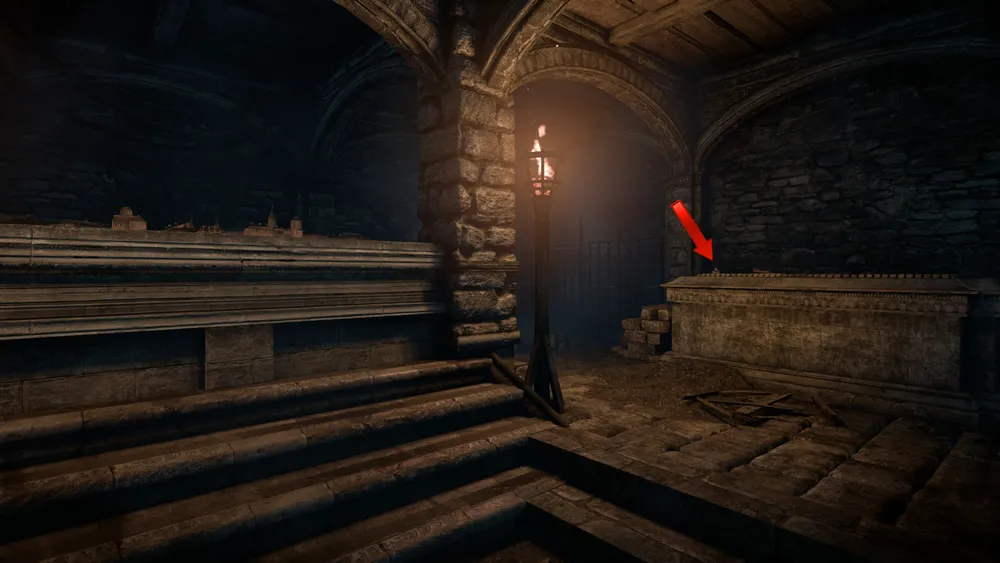 Проклятые зубы Рорка! Кажется, Гаррет попал в склеп или чью-то усыпальницу. Осмотритесь, пособирайте лут. На одном из саркофагов непременно обнаружится коллекционный браслет.