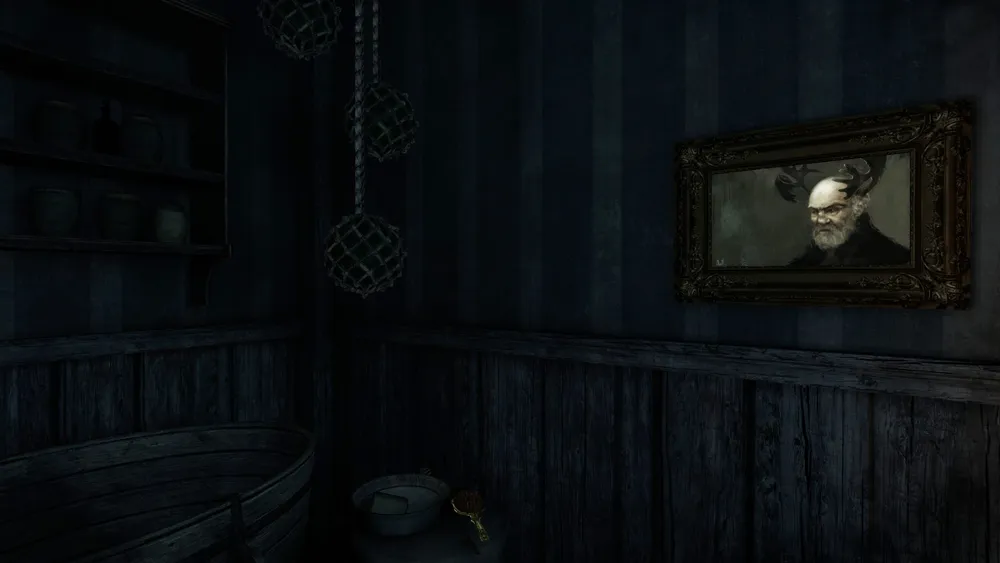 1. Картина "То, что здесь, не увидишь" (Палата Монтонесси) висит на первом этаже домика Коллекционера, в кухне.