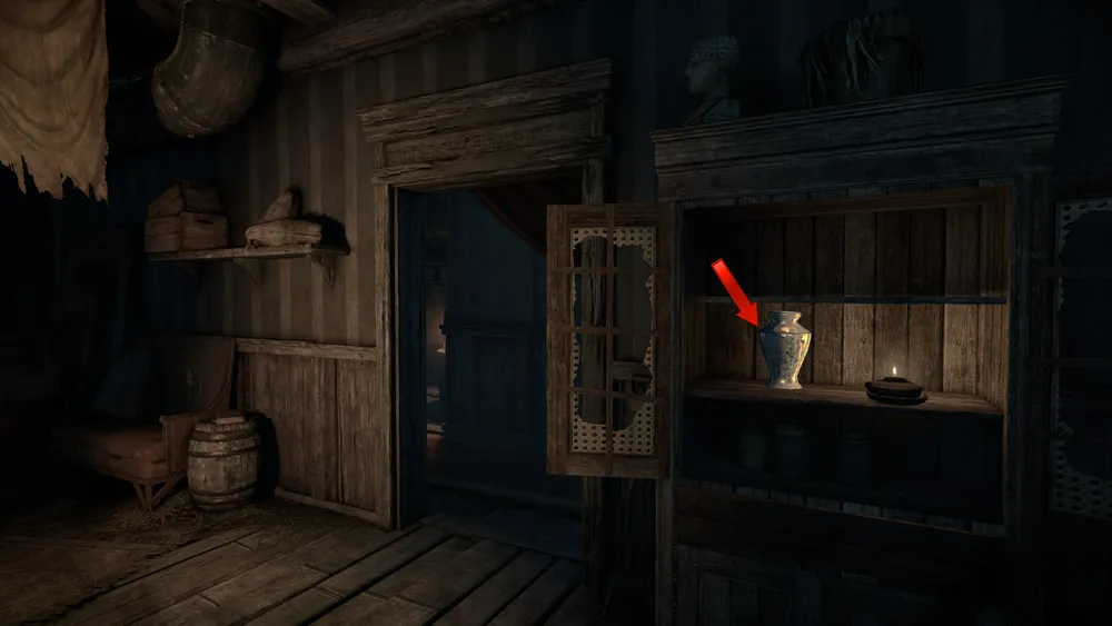 2. Октокот (Трофеи клиентов) спрятан в хранилище Коллекционера, в шкафу. Войти в хранилище можно только со двора, а из домика во двор проще всего попасть через окно на втором этаже.