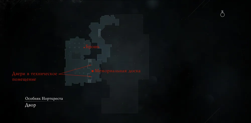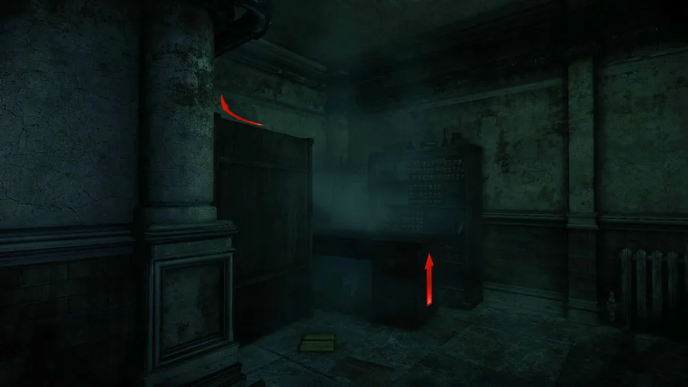 Брошка обнаружится в полуподвальном помещении за лифтовой шахтой женского отделения. Но свой путь к ней Гаррет начнет со второго этажа приюта, из вестибюля женского отделения.