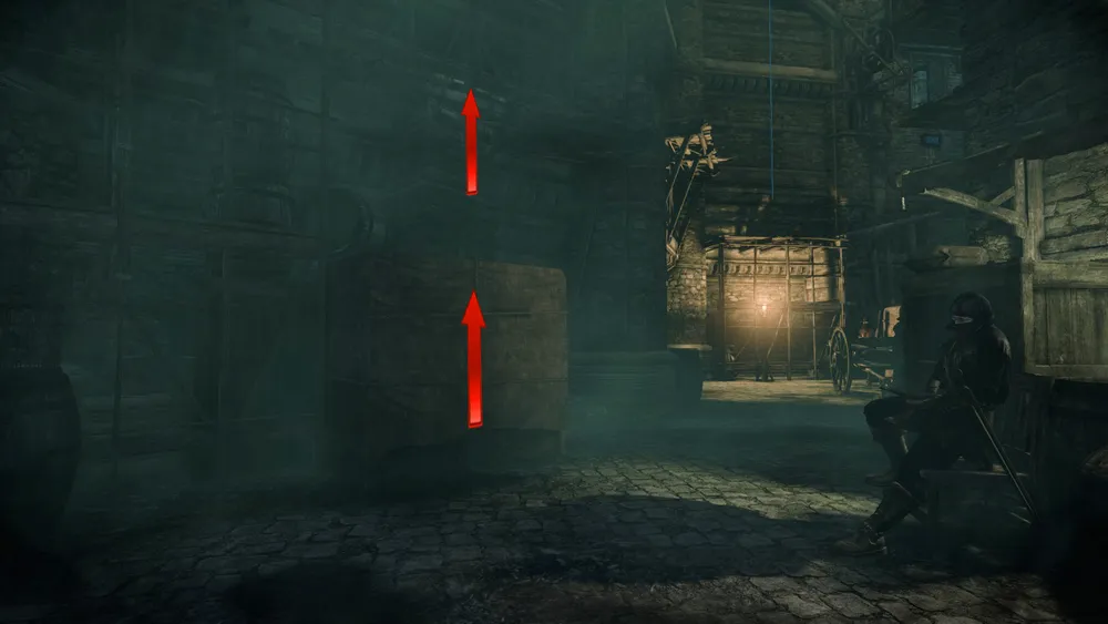 Как только Гаррет "сойдет" с лифта, закончит изображать из себя человека-паука и окажется обеими ногами на твердой земле, значит, самое время начинать искать первый в этой главе трофей.