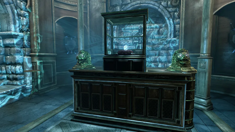 Как только все будет сделано правильно, головы львов повернутся, и появится витрина с мерцающим артефактом. Вот так фамильная реликвия Норткрестов теперь обрела нового владельца.