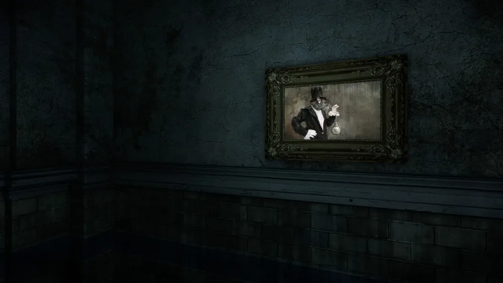 Висит картина в коридоре второго этаже, возле дверного проема в комнату, из которой есть проход в разрушенный ритуальный зал (куда, собственно, Гаррету и надо попасть по сюжету).