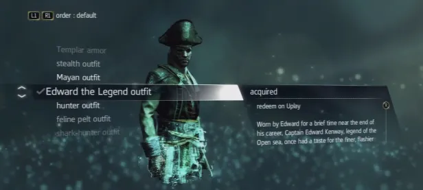 Устрашающий костюм с пиратской нашивкой на плече и изображением кракена на треуголке, который носил Эдвард на закате своей пиратской карьеры теперь можно приобрести в Uplay всего за 20 очков. Аттракцион невиданной щедрости!