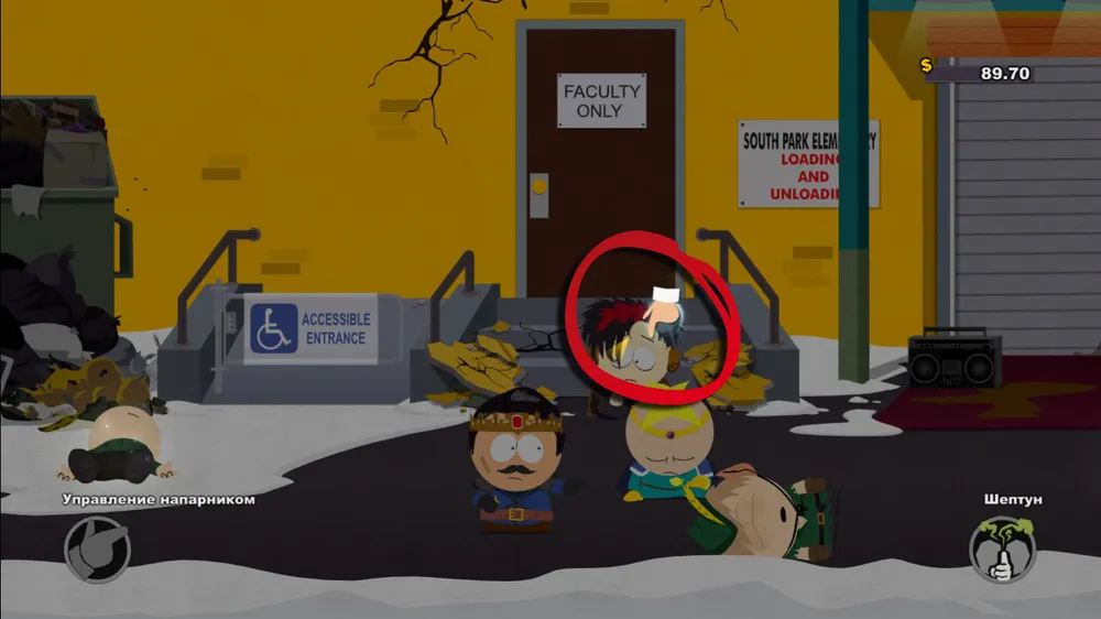 После этого откроются два новых напарника: Стен и Джимми. Возвращайтесь к готам. Их следующее задание – отправиться в родительский комитет, положить на стол нонконформистский знак протеста и сфоткать его как доказательство. Выходите со двора школы и идите вправо. Родительский комитет прямо за углом.