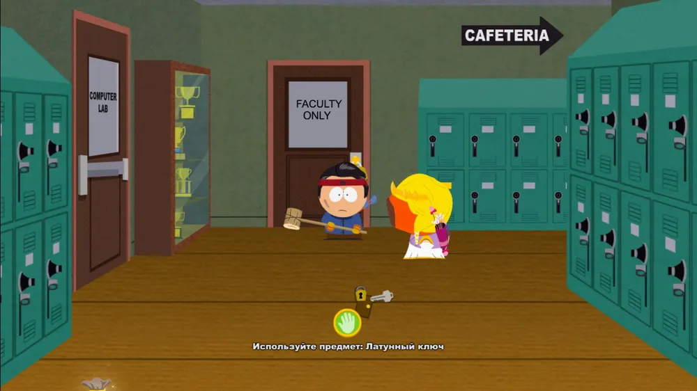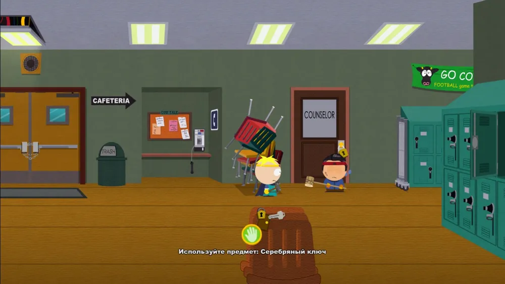 Выберите Баттерса как напарника и исцелите плачущего мальчика. За помощь он даст вам серебряный ключ от кабинета мистера Маки. Отправляйтесь туда.