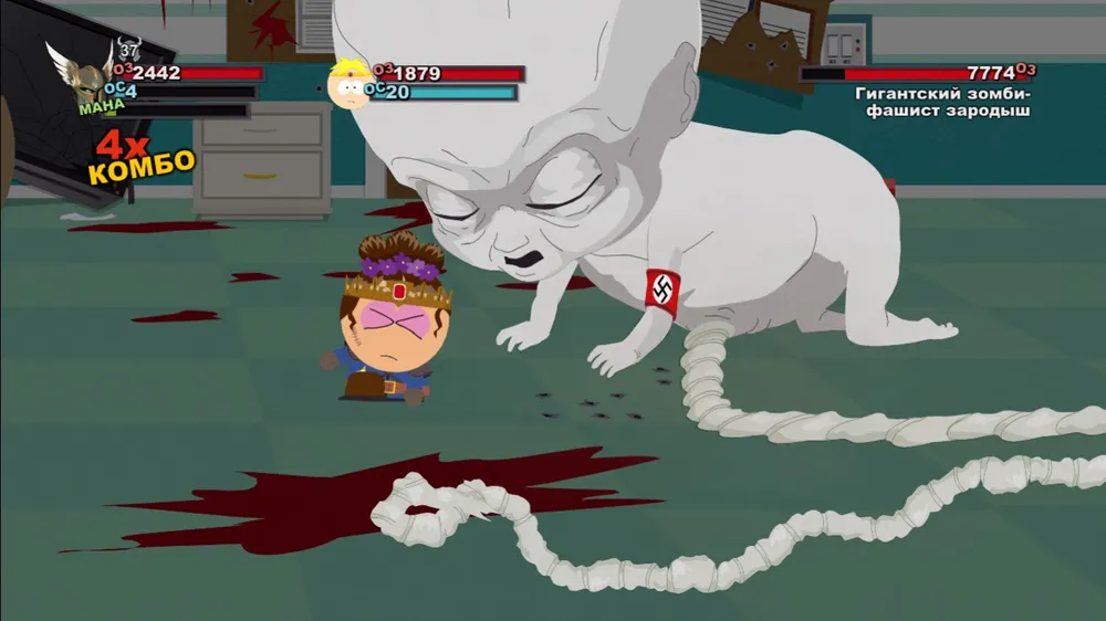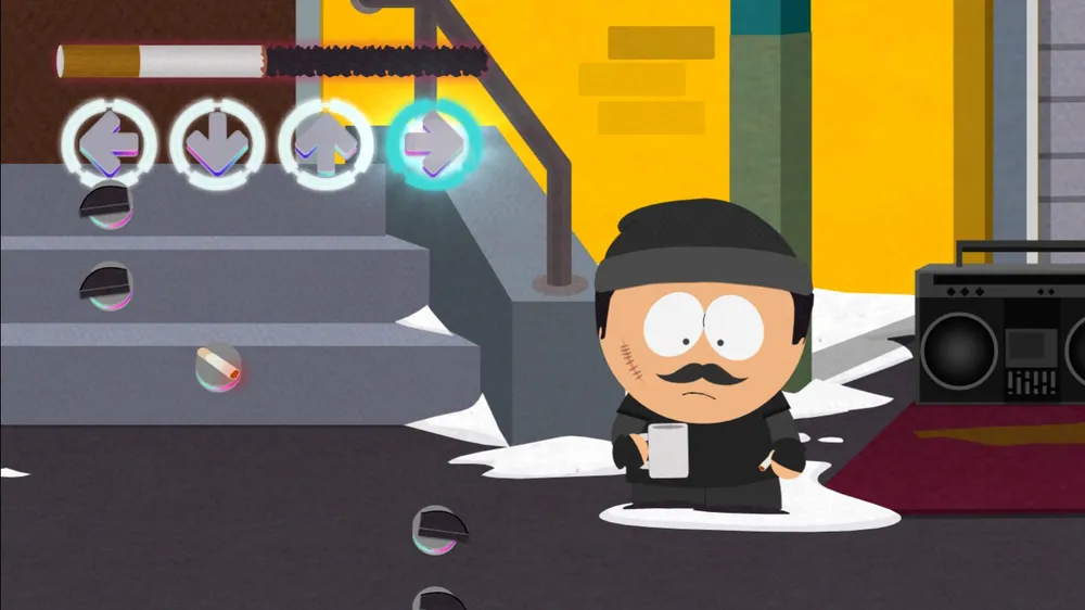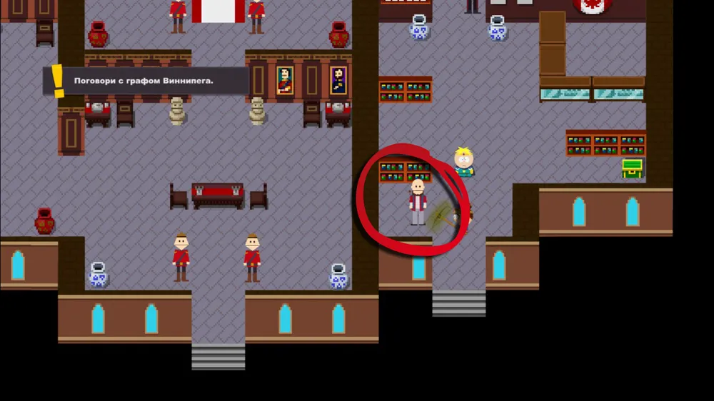 После небольшого ролика вы все еще можете поменять свою фракцию, атаковав лидера своей фракции. Разницы в том, кого атаковать, Кайла или Картмана, нет. Разве что ачивки дают разные. Победив своего оппонента, выяснится правда о пропаже Палке Истины. Задание пройдено.