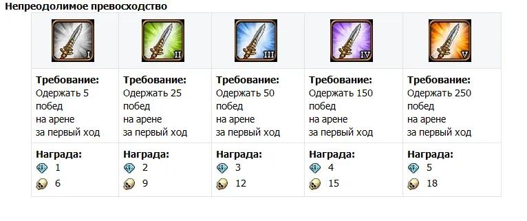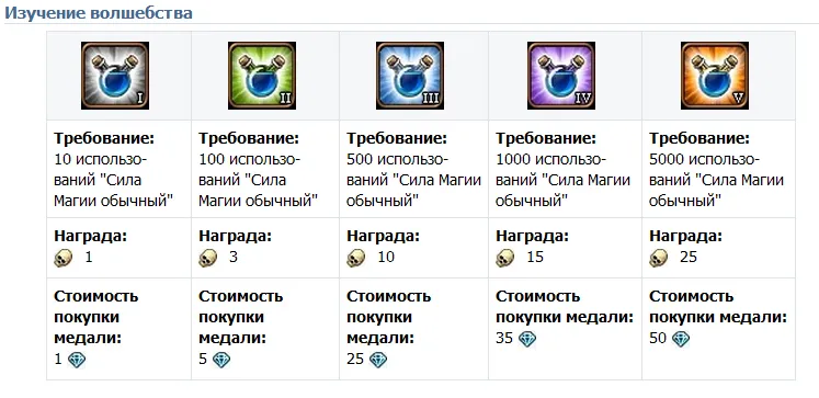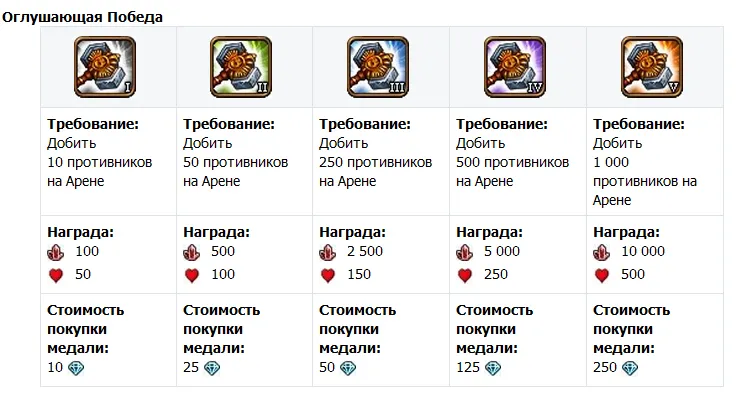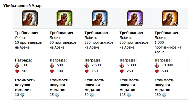Важно!Постарайся по-максимуму прокачать заклинания в Школе магии и набить аренные медальки до 4-5–го уровней твоего персонажа! Так намного проще их набить, потому, что чем выше твой уровень, тем все больше сильных игроков будут тебе попадаться на арене, которые могут сбить тебе серию, а победить с первого действия все тяжелее.