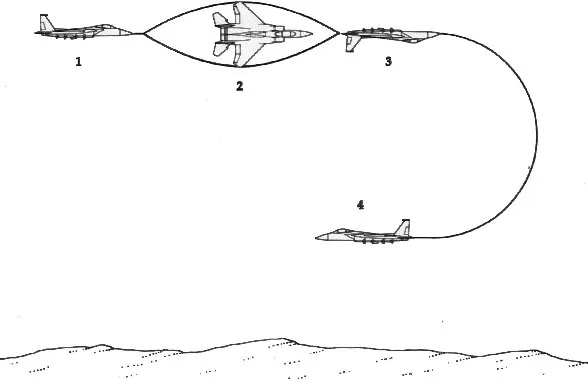 Например, маневр split-S простой и полезный защитный манёвр: нужно осуществить переворот вверх ногами, а потом петлю, и ты уже летишь в обратном направлении, можно делать и в обратном порядке, сначала петлю, а потом уже переворот.