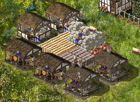 Как я указал выше, в игре вы можете заполучить до 10 деревень, для их захвата или покупки вам потребуется капитан и изученный скилл ветки милитари - Leadership. В игре существует 10 типов деревень, из них самым первым для вас должен стать сбалансированный (это идеальный вариант для развития), следующими я брал деревню с рекой для ловли рыбы (есть 2 типа деревни с рекой, в 1ом типе вы можете делать специи, во втором щелк) и деревню с болотом (для добычи нефти, на самом деле, руководствовался современными байками о выгодности нефти, но в этой игре она ни черта не прибыльная ;)), так же есть равнина (сбалансирована, берем в виде первой деревни, а точнее не меняем), плоскогорье и горы имеют преимущество в обороне замка, на горном ландшафте очень много камня, а так же много железа, их различие лишь в том что на горном ландшафте оборона замка лучше и добыча камня больше, а в плоскогорье имеется нефть, далее соледобывающая деревня, думаю название говорит само за себя, на полях вы сможете добывать много пшеницы и готовить вино, в лесах само собой рубить много дерева, но его и без леса очень много если изучить скилл по добыче дерева на максимум.