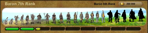 Титулы, их хочется получать часто, и чем выше ваш титул тем больше возможностей вы получаете, помимо уважения и даже боязни вас, вам откроется доступ к новым скиллам, да и кстати, уже с 12 уровня вы можете захватить или купить вторую деревню, с 15 - 3, с 17 - 4, с 18 - 5, с 19 - 6, с 20 - 7, с 21 - 8, ну а с 22 целых 10! Правда чтобы дойти до уровня 22 (максимального в игре), вам предстоит не менее полу года игры ;) (на данный момент я барон 7 ранга, хотя в игре уже около, скажем 60 дней).