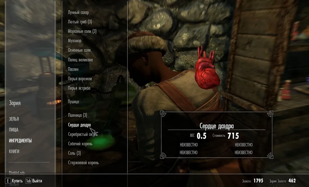 Небольшое и ненужное вступление: сердце Даэдры – очень редкий ингредиент, на него не дают специального квеста и наткнуться на него можно только методом научного тыка. И я не зря подметил, что это ингредиент. Это значит, что его можно случайно сожрать или сварить из него зелье. Будьте бдительны!
