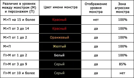Помимо самого названия, имя монстра в таргет-баре отражает разницу между уровнем вашего персонажа и монстра. Изменение цвета имени монстра в зависимости от его уровня будет представлено далее.