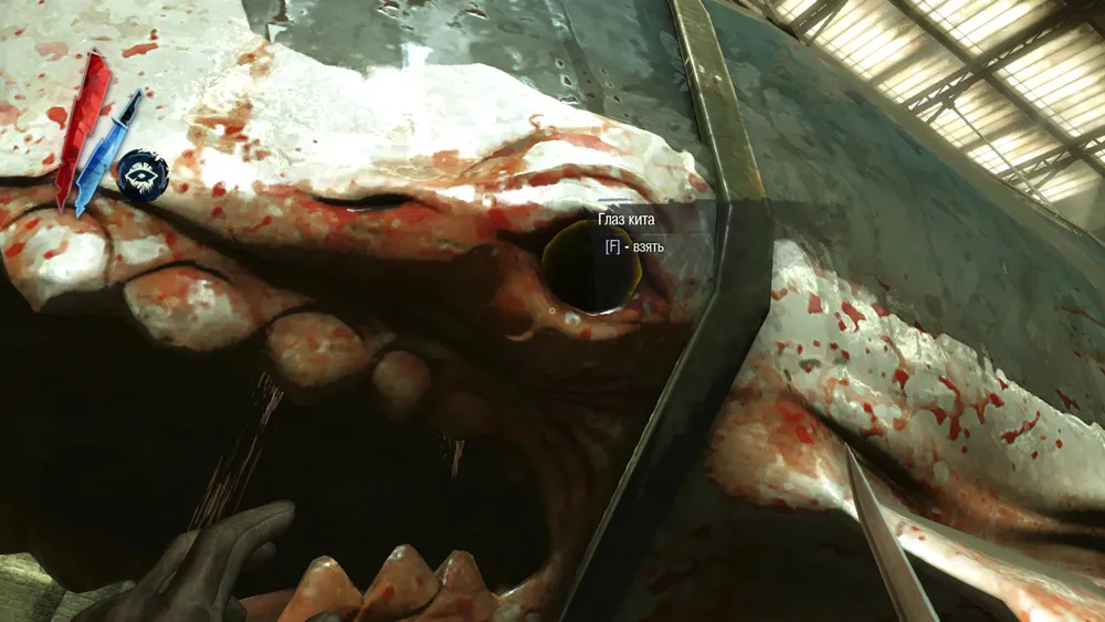 Эвтаназия произведена. Наградой за проявленное милосердие станет левый глаз кита - ингредиент из рецепта Ветоши. Просто вынимаем его из уже мертвой туши.