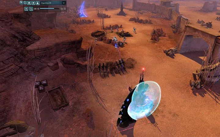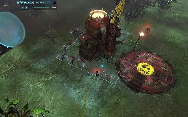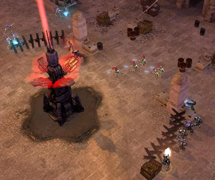 Во-первых, это — атака базы противника (тактика, пришедшая из режима Annihilation). Набрав 150 единиц Zeal, вы можете призвать врата на свою базу (или в поле неподалеку от Ваших Баньши) , при помощи Farsight открыть местонахождение базы противника и запульнуть им в тыл еще одни врата, из которых потом выйдут Ваши бойы и начнуть ломать базу противника. У всех рас, кроме тиранидов, пушки на базе имеют ограниченный угол прострела.
