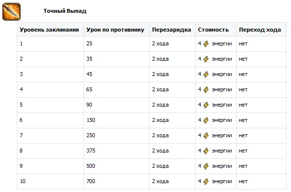 Меченог 5 лвл – культовая – "точный выпад" (магия защиты).