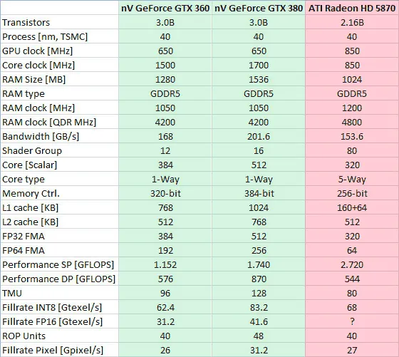 Одновременно с появлением довольно любопытных графиков производительности видеокарт NVIDIA GeForce GTX 380 и GeForce GTX 360 в Сети были опубликованы и их предварительные спецификации. Характеристики топового GF100 Fermi полностью совпадают с более ранним прогнозом, а вот о GTX 360 мы говорим впервые.