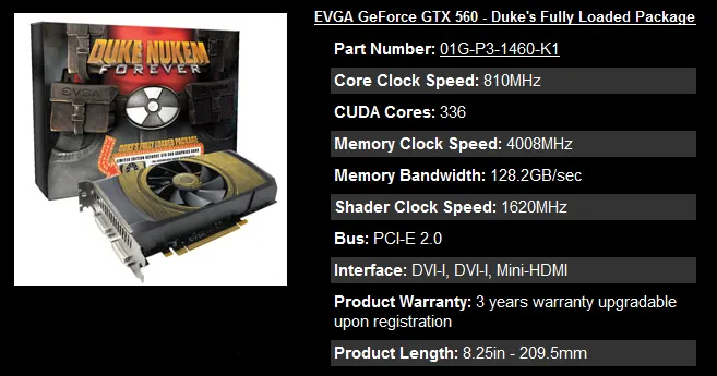 Limited Edition EVGA GeForce GTX 560 Duke Nukem Graphics Card