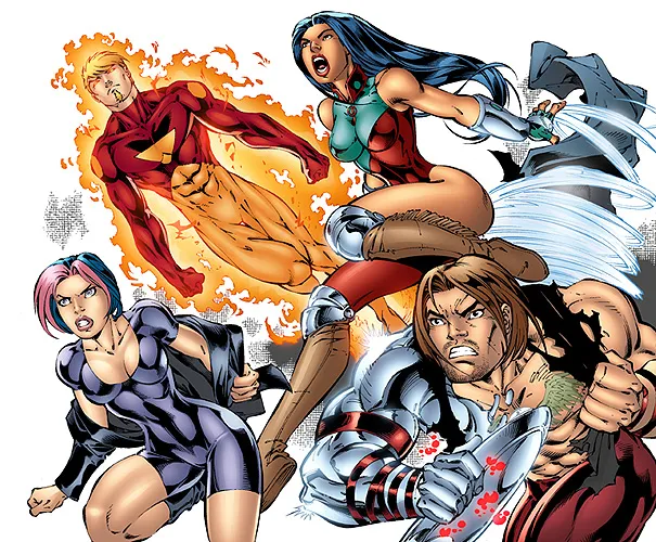 *Роксана Сполдинг или «Фрифолл» (англ. free fall — «свободное падение»): Рокси управляет силой земного притяжения вокруг себя и других объектов. Она способна двигаться по воздуху, аннулируя действие гравитации, перемещать в пространстве объекты любой тяжести. Рокси тайно и безответно влюблена в Гранджа, которого ревнует к Кэтлин из-за её потрясающей физической формы. Позднее выясняется, что Рокси и Кэтлин — сводные сестры, обе дочери Алекса Фэрчайлда из Команды 7. Рокси всего 16 лет, но она не выпускает сигарету изо рта. Добродушна, любит повеселиться, ходить на дискотеки.