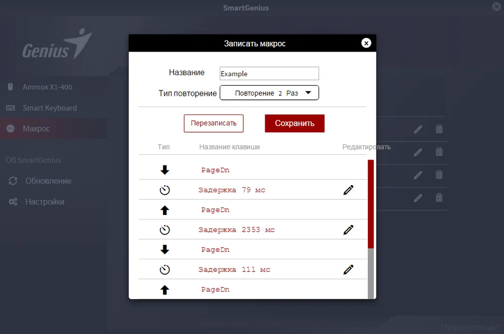 Это что касается особых настроек утилиты Smart Genius. Её основные возможности - создание различных профилей и написание макросов. В сочетании ещё и с мышкой Genius, можно приготовить набор настроек под отдельную игру. Однако, к моему удивлению, здесь нет возможности повесить вызов макроса на клавишу клавиатуры - подобная опция прослеживается для клавиш мыши. Принимая во внимание некоторый дефицит кнопок, свободных от важных функций, это обстоятельство сужает области применения макросов.