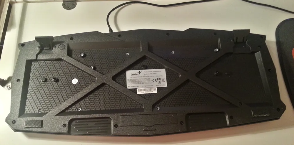 Однако, клавиатура Genius Scorpion K220 ещё способна преподнести сюрприз: в её конструкции предусмотрели защиту от пролитой на неё жидкости. Проверять экспериментально на практике это заявление производителя сам не рискнул, тем не менее утверждается, что реализована система каналов под дном клавиатуры, и в случае какой-то досадной оказии — случайно пролили свой напиток, как пример — жидкость не скапливается на плате устройства, но стекает по этим каналам наружу из её корпуса. Очень может быть, что такая подстраховка кого-нибудь и правда выручит.