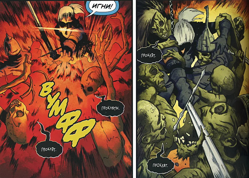 Что не срослось в 2007 г., выгорело в 2011 г. Так появилось "Благо народа" - графическая новелла в двух частях. Создавалась она коллективом польских авторов и художников (Михалем Галеком, Аркадиушем Климеком и Лукашем Поллером), не понаслышке знакомых с книгами своего соотечественника. И хотя сюжет их произведения придумывался с нуля, им удалось, насколько это возможно при смене жанра, сохранить общую атмосферу выстроенного Сапковским мира и характер главного героя. Люди все так же оставались людьми, не плохими и не хорошими, со всеми своими грешками и достоинствами, скелетами в шкафу, тараканами в голове и заблуждением, что ведьмак и киллер - это примерно одно и то же. Геральт все так же следовал своему кодексу, памятуя, что меч - это последнее средство, что ведьмаки не охотятся на разумных существ и что распоряжения богатеньких аристократов ему не указ. Он все также был угрюм и проницателен, все так же старался избегать вмешательства в политику и во внутрисемейные разборки влиятельных особ и все так же оказывался втянутым в них против собственной воли. Кроме того, с Сагой комикс связывало упоминание событий, позволявших худо-бедно вписать рассказанную в нем историю в общую хронологию Мира Ведьмака - два года спустя после битвы при Соддене. Помните? Передав Цири на попечение Нэннеке и Йеннифэр, Геральт снова вернулся к привычной ведьмачьей работе. В отличие от комиксов М. Паровского и Б. Польха, "Благо народа" получил распространение далеко за пределами Польши, а его анимированная версия появилась даже в AppStore, причем за бесплатно. У нас он, полностью переведенный, прилагался к июньскому и августовскому номерам журнала "Игромания" за 2011 г. Проекты пиарились всеми доступными им средствами, и рисованный спин-офф из жизни Белого Волка стал частью их крупномасштабной компании по продвижению Ведьмака 2 в массы (для желающих ознакомиться: первая и вторая части).