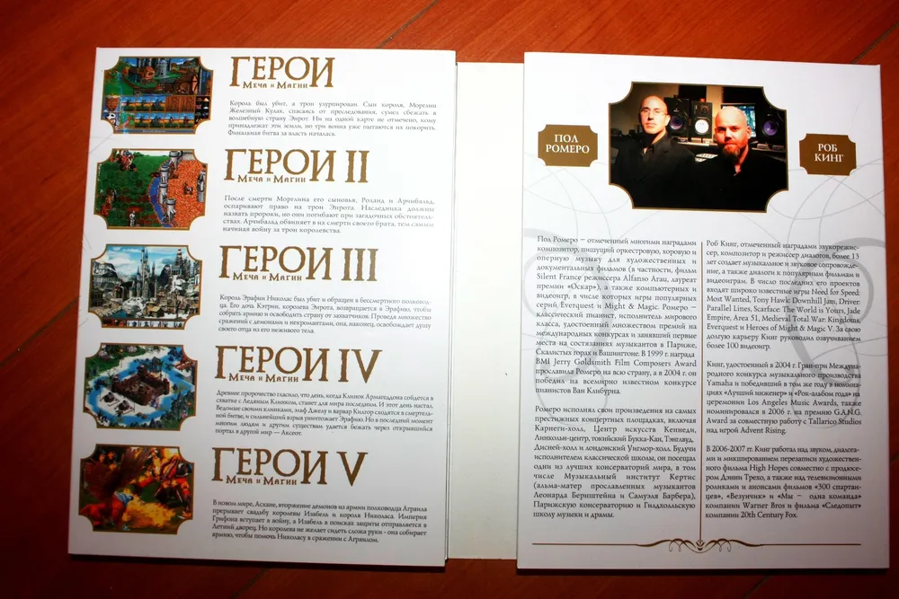 Дневников разработчиков и другого ценного эксклюзива там не нашлось. Но арты, обои для рабочего стола, фанатские мануалы, тизеры и ролики пятой части – вполне достаточно, чтобы погрузить игрока в воспоминания на полчаса. Да, со времен пятой части уже прошло достаточно времени для ностальгии. Если на западе это издание в 2007 было именно закрывающим, с заделом на будущее, чтобы игроки через пять или десять лет вспоминали, как оно было… Хоть персонажи и действие шестой части не пересекается с пятой (там глубокий сюжетный приквел), освежать воспоминания – главное назначение этого издания. Но всё же приходится констатировать, что первые части здесь – для галочки. Понятно, что материалов для артбука по первым частям уже не соберешь, разработчики и издатели давно разбежались, поэтому на мой взгляд, лучше сделать упор на глубину освещения пятой части, чем по верхам пробежать все пять. Хотя саундтреки HoMM 3-4 положить явно стоило.